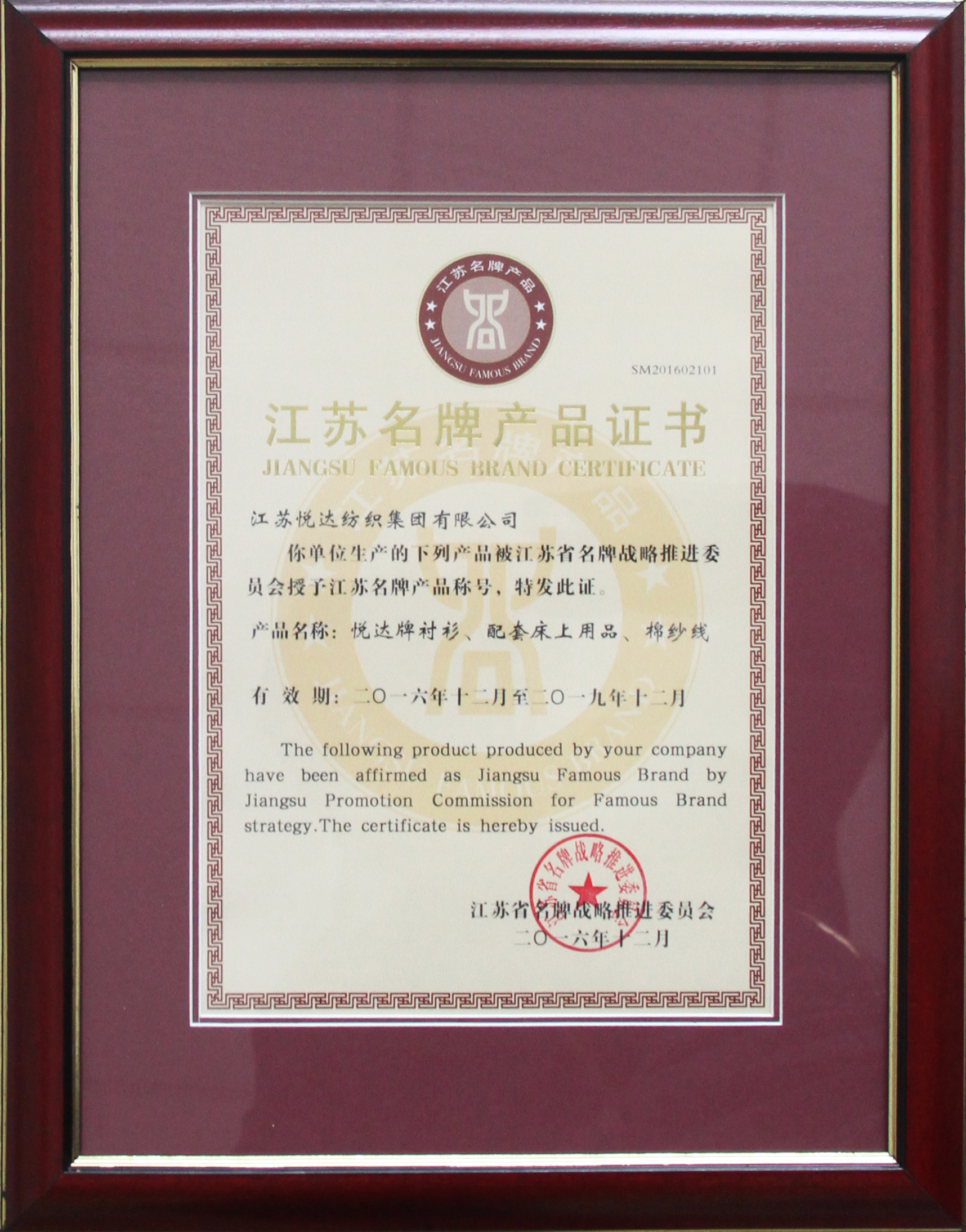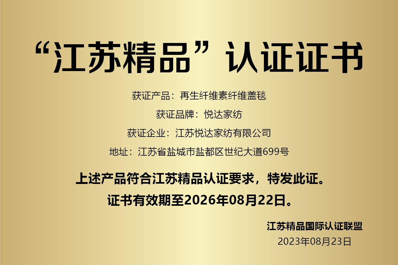 “江苏精品”认证证书